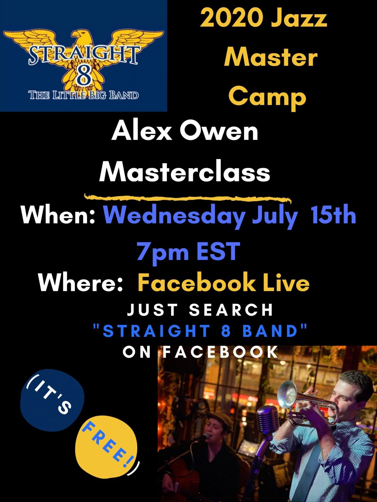 We have three great clinics this week on Wednesday, Thursday, and Friday at 6 PM (CDT). On Wednesday you’ll hear from NYC-based trumpeter Alex Owen who talks about traditional New Orleans music and give tips on bandleading. Thursday you’ll see guitarists Zakk Jones & Brandon Coleman play some duo tunes and discuss the very basics of soloing over a blues + much more. Finally, on Friday our 2020 Jazz Master Camp Director Zakk Jones will tell you all about his list of “Things That Don’t Take Talent.” These videos will be going live at 6 PM (CDT) Wednesday through Friday but they will be available to watch and rewatch at any time after that on Facebook or Youtube. Stay tuned for the next batch of amazing artists and be sure to tell your friends and family about this great free series.